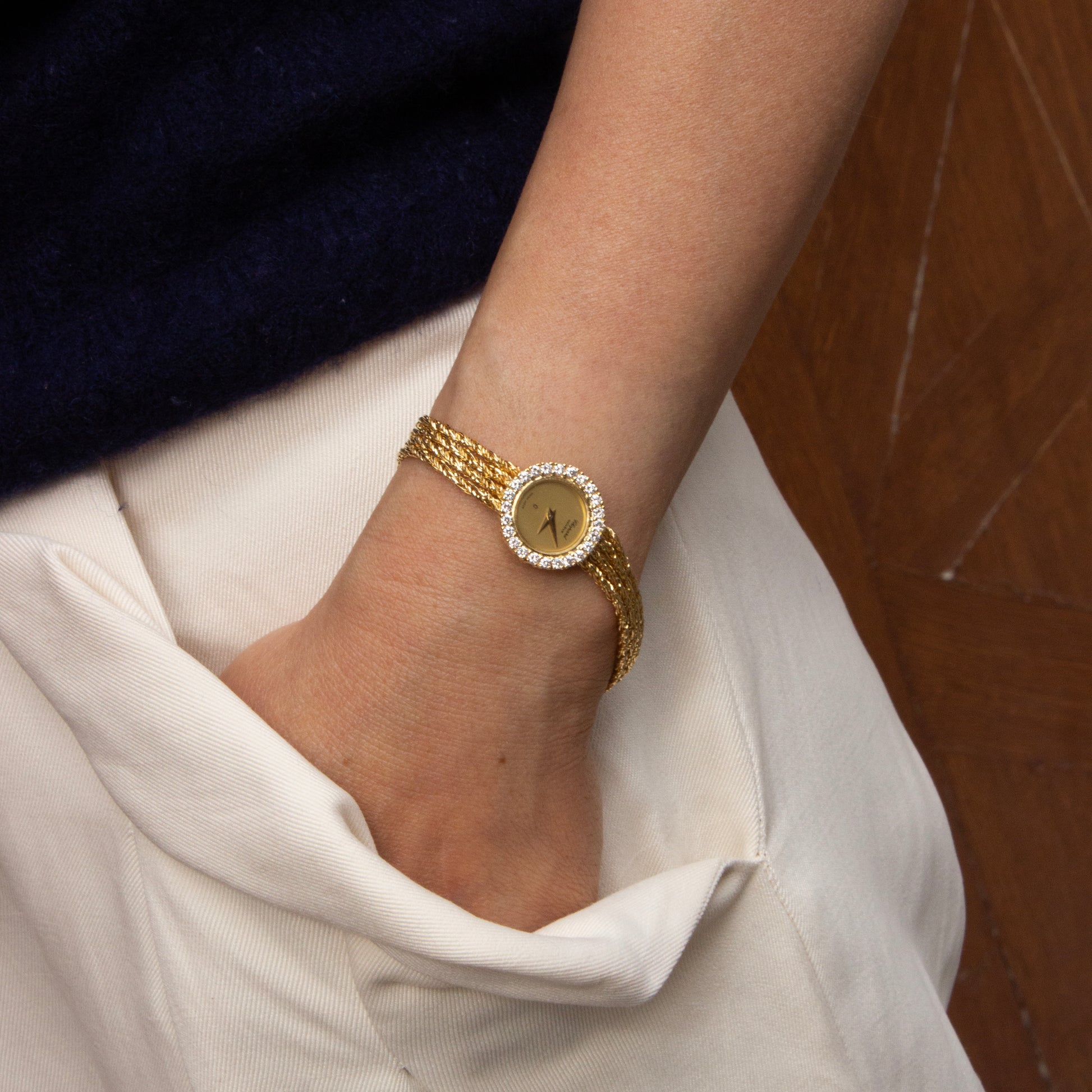 - Boitier en or jaune 18 carats, cadran or.