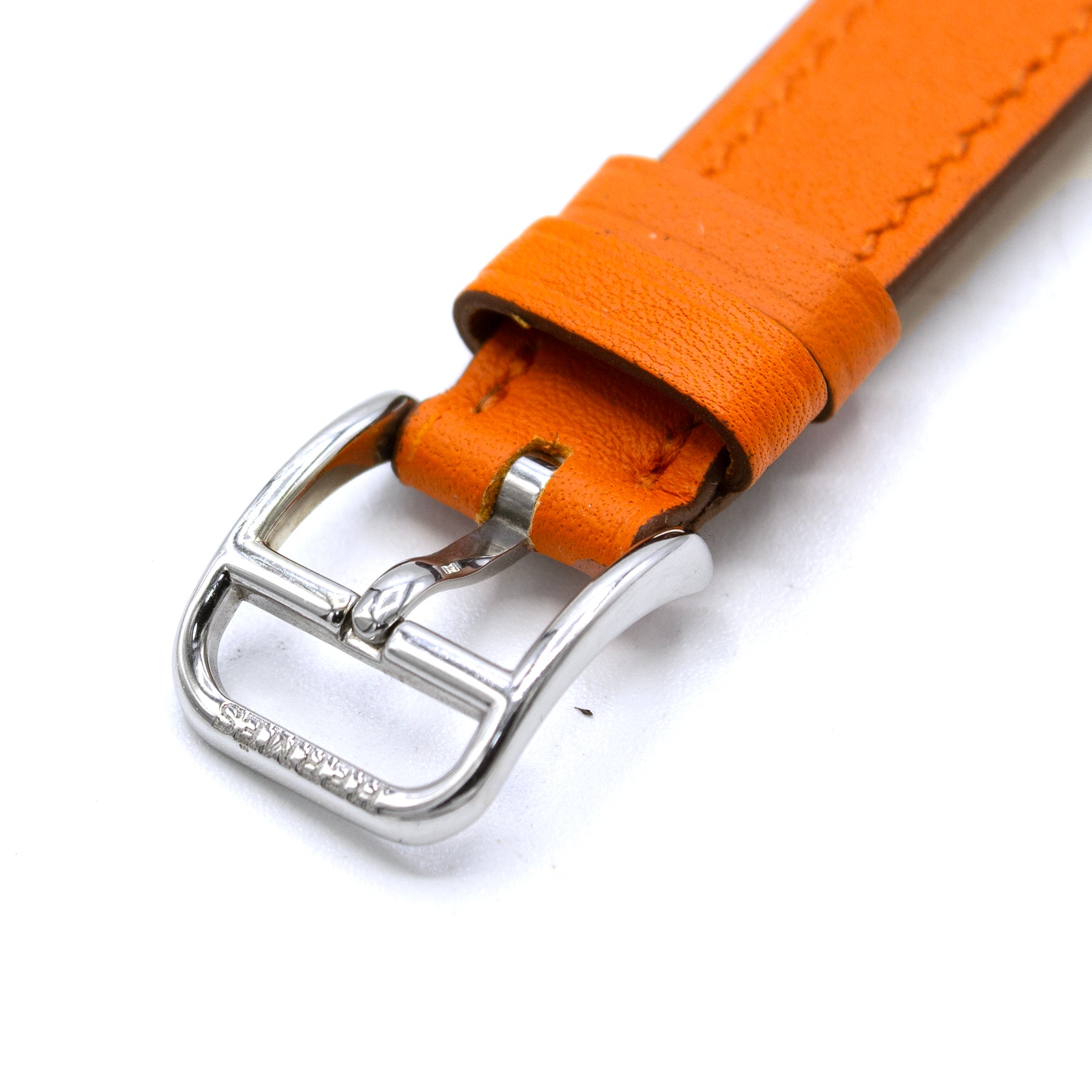 - BRAND NEW orange leather strap by Hermès, signed pin buckle.