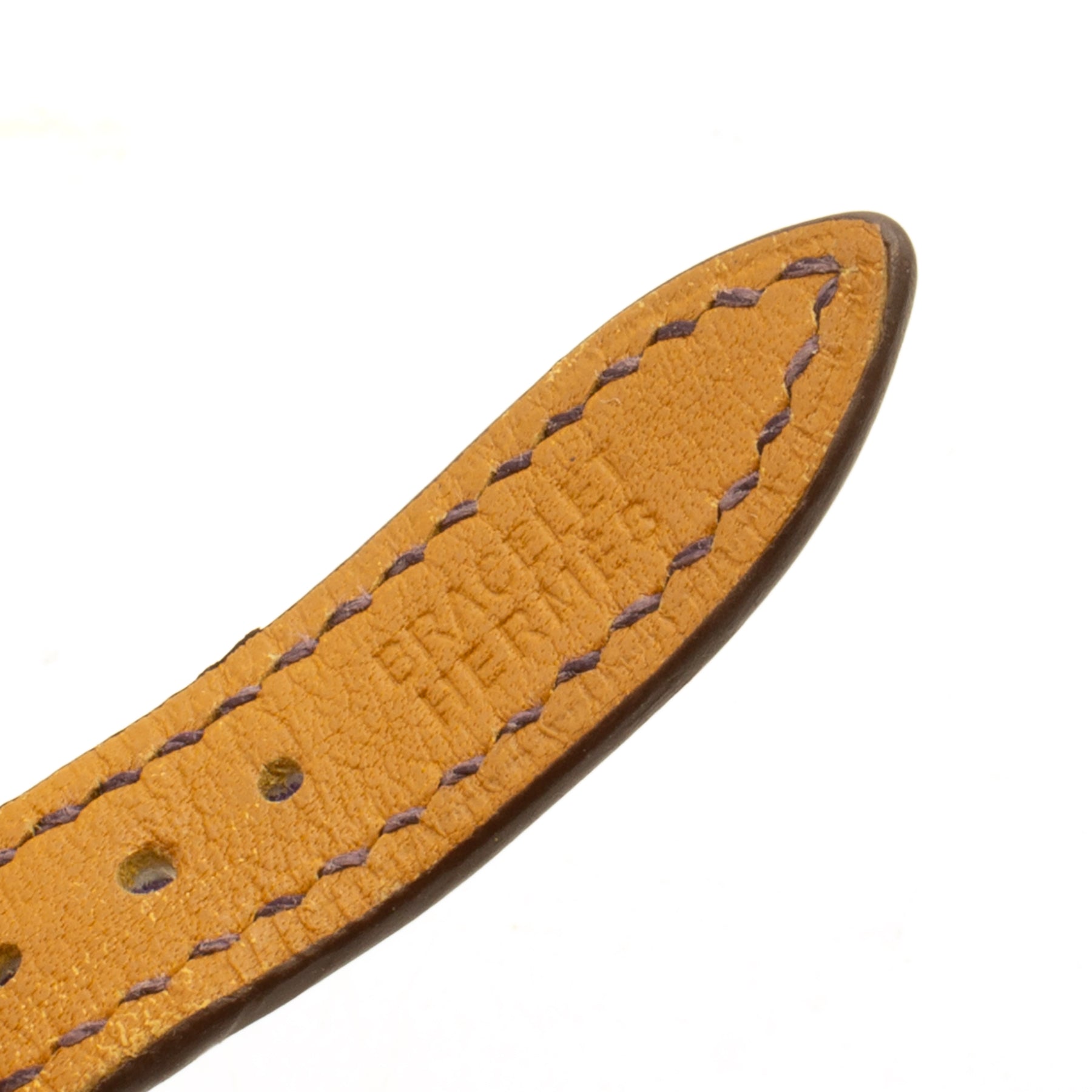 - Bracelet en cuir violet signé Hermès, boucle ardillon en acier signée Hermès.