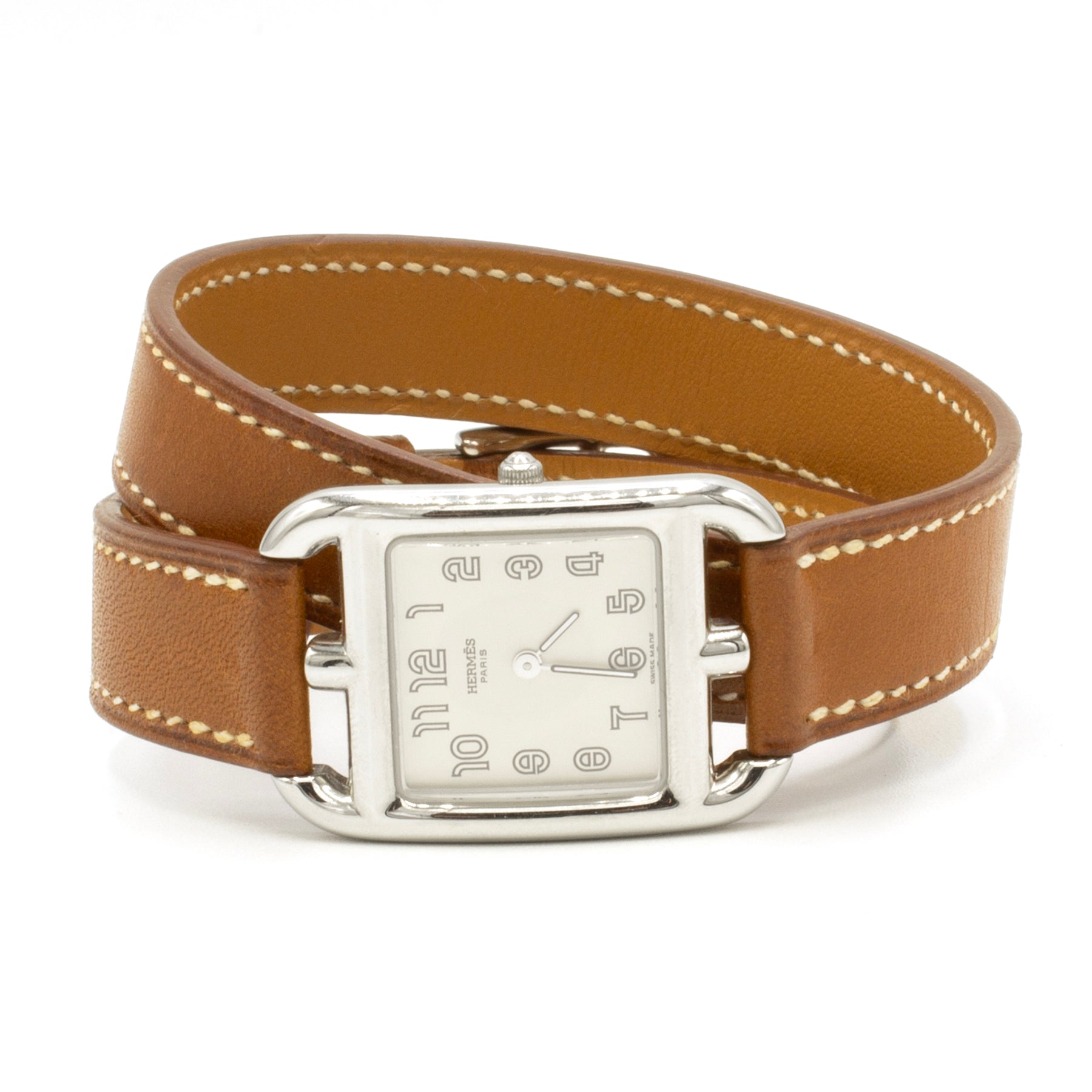 - Double-wrap calfskin leather strap by Hermès, steel buckle.