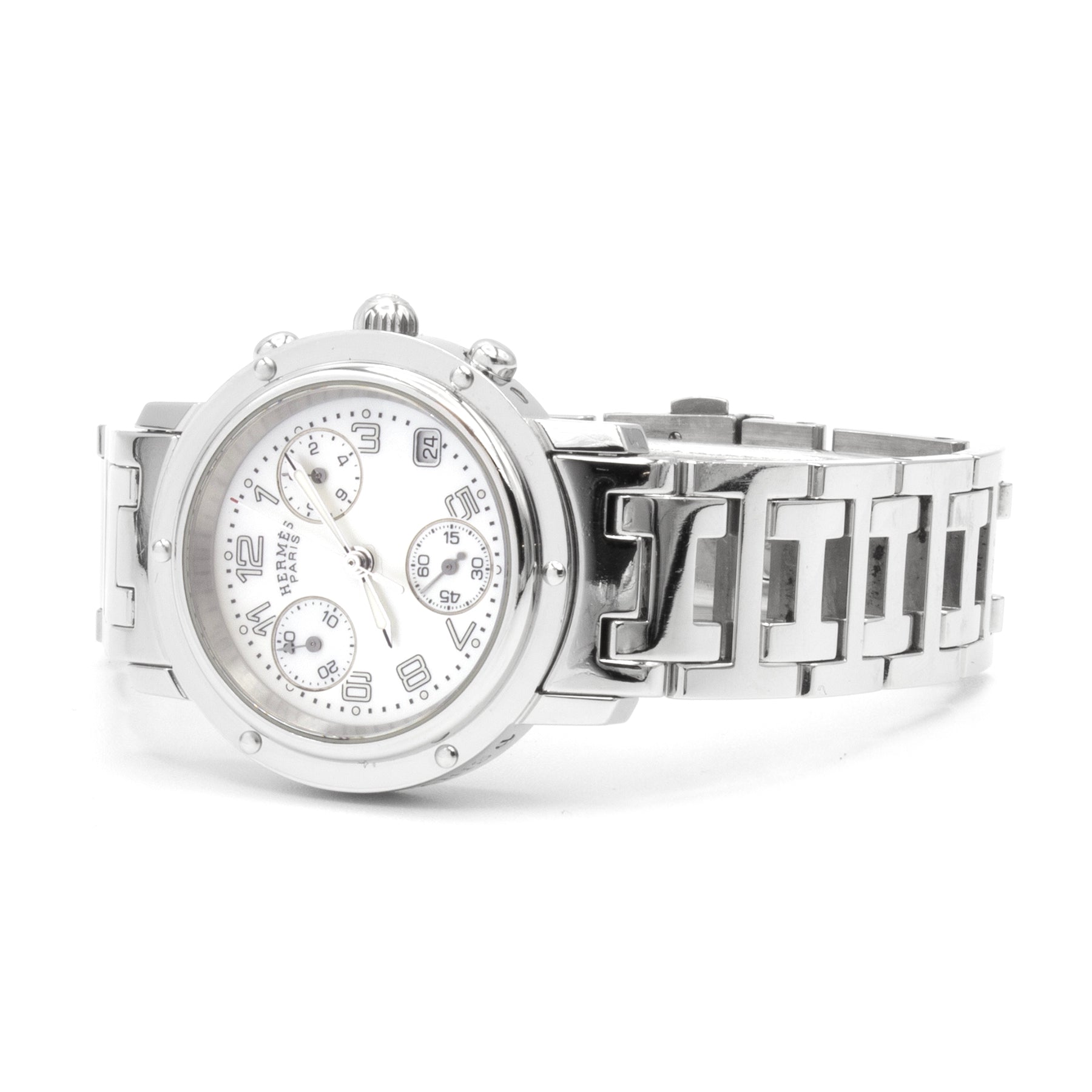 - Bracelet en acier, boucle déployante en acier signée Hermès.