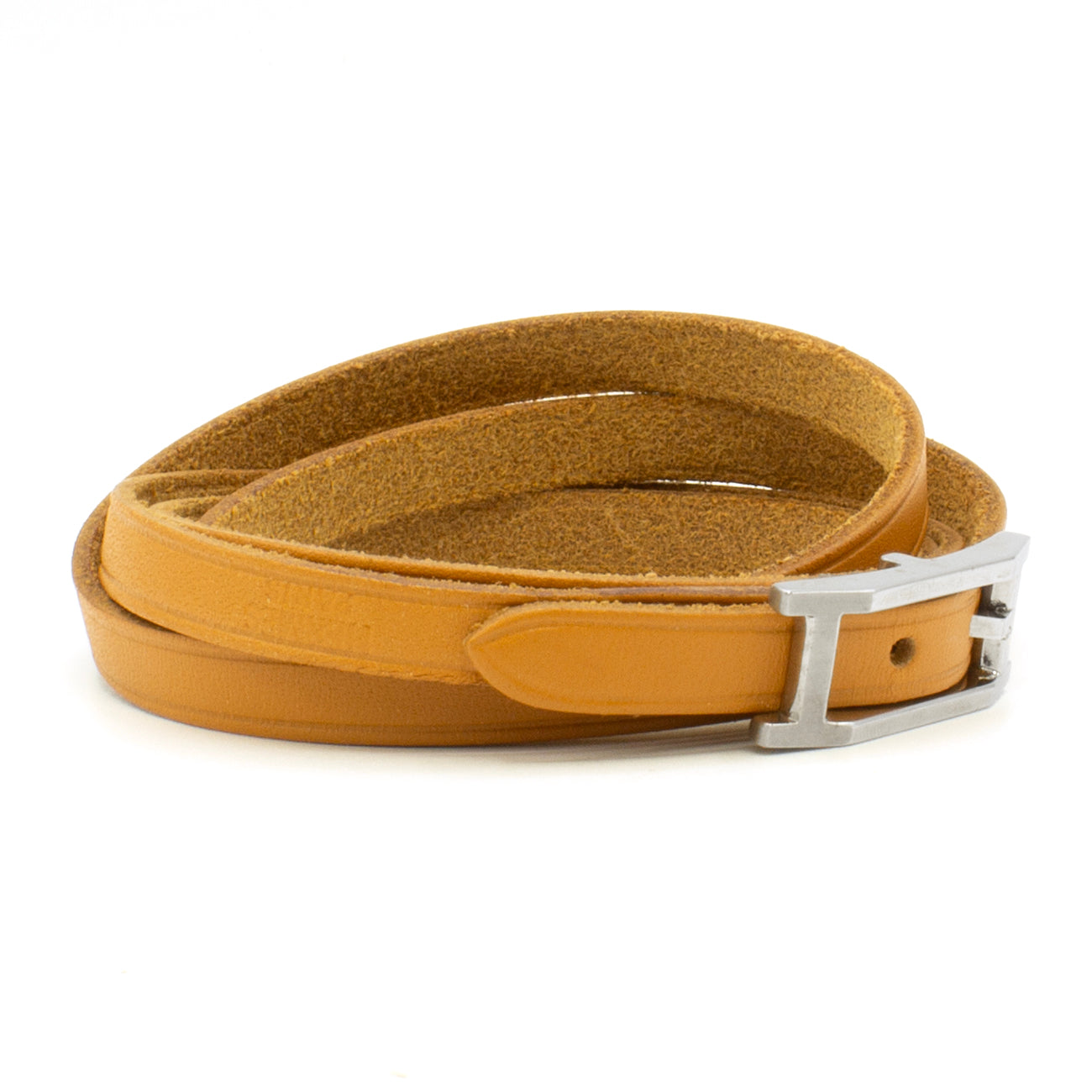 - Multi-tours en cuir coloris "sable safran" et 3 trous.