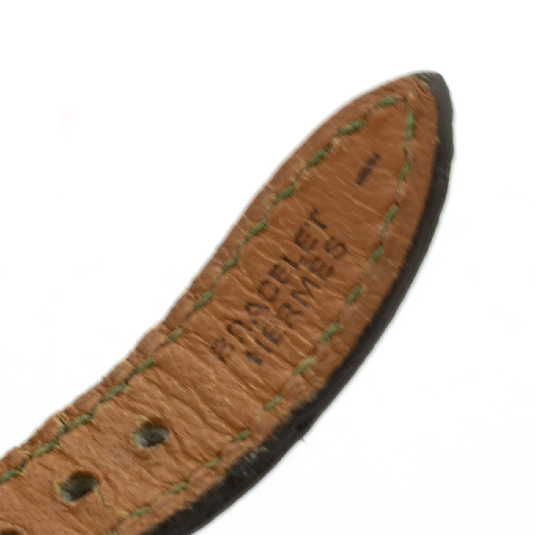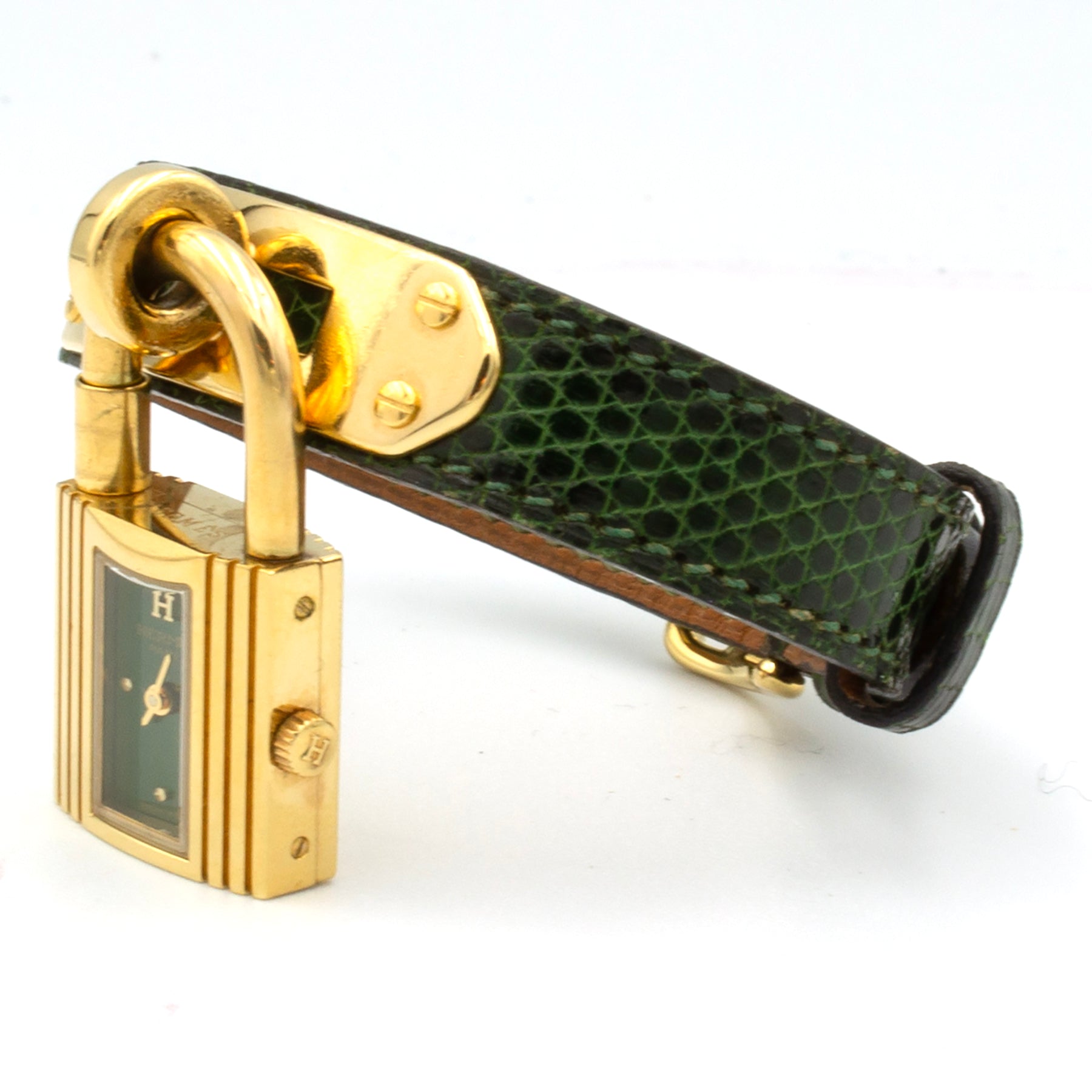 - Green lizard leather strap signed Hermès. Original buckle.
