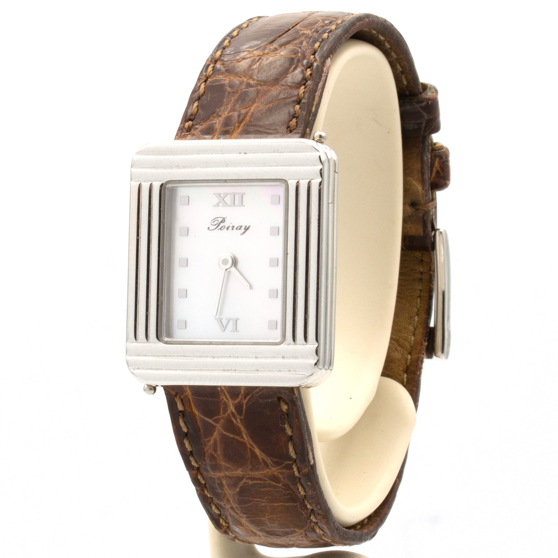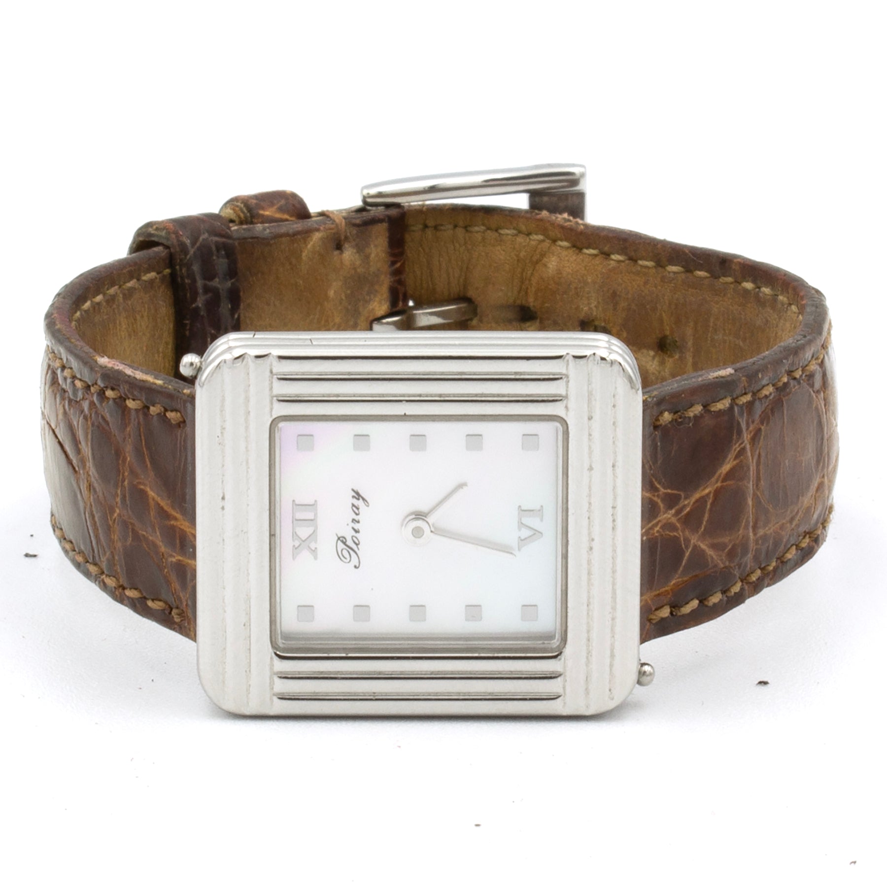 - Crocodile leather strap signed Poiray, signed pin buckle. Signs of wear on the strap. See photos for details.