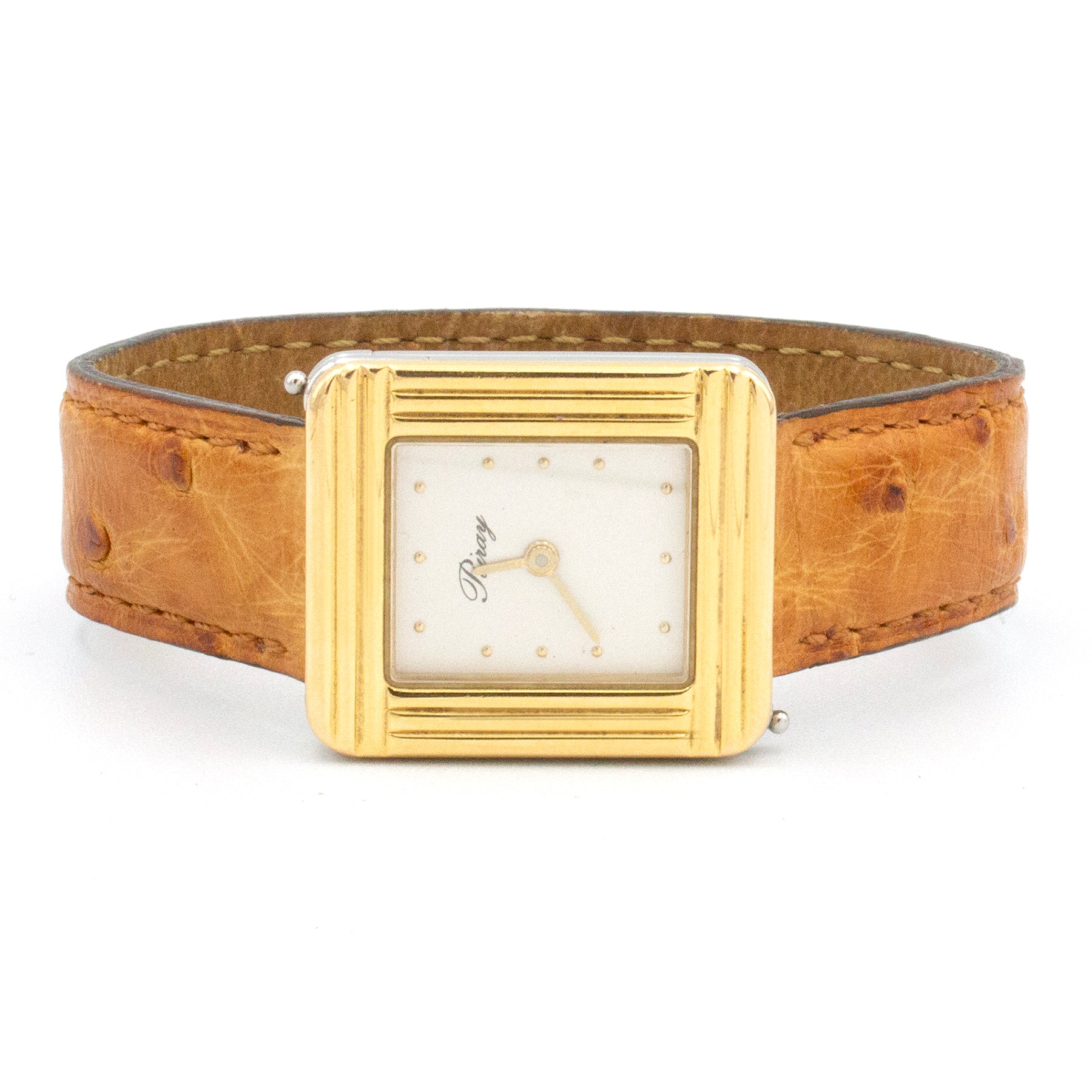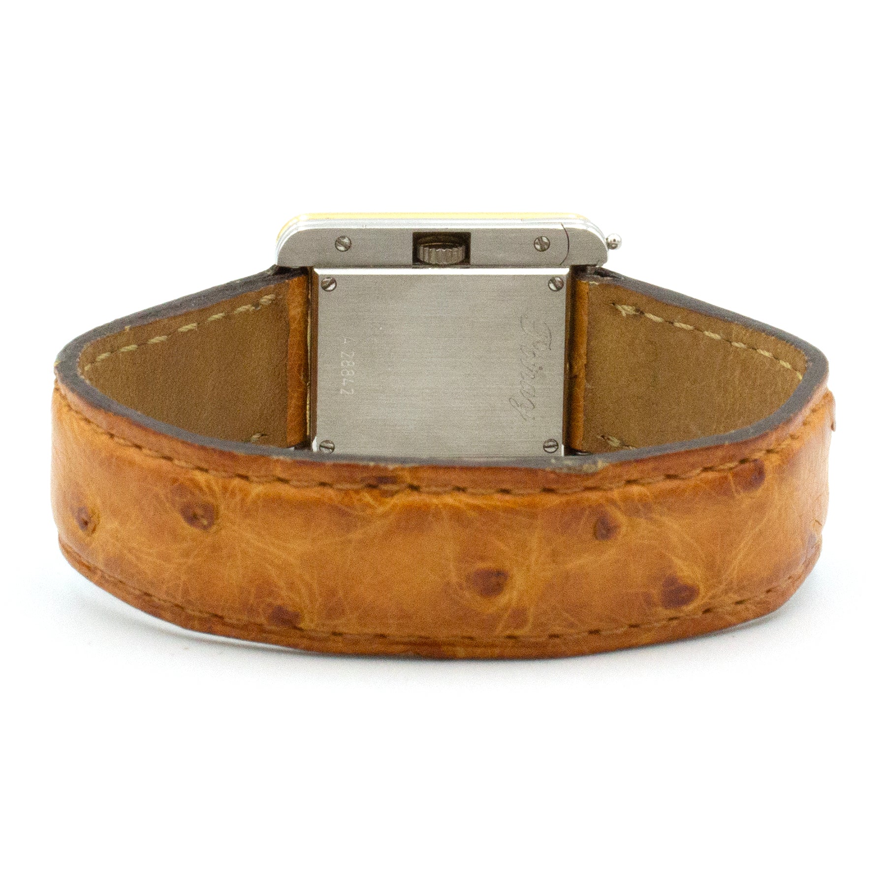 - The Poiray strap is made of natural ostrich leather.