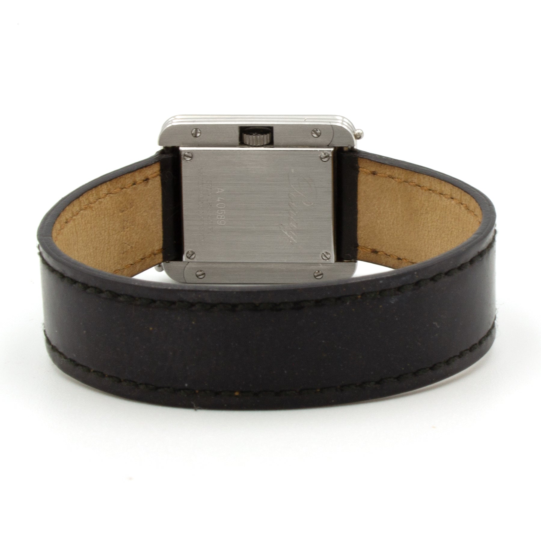 - Black leather strap signed Poiray.