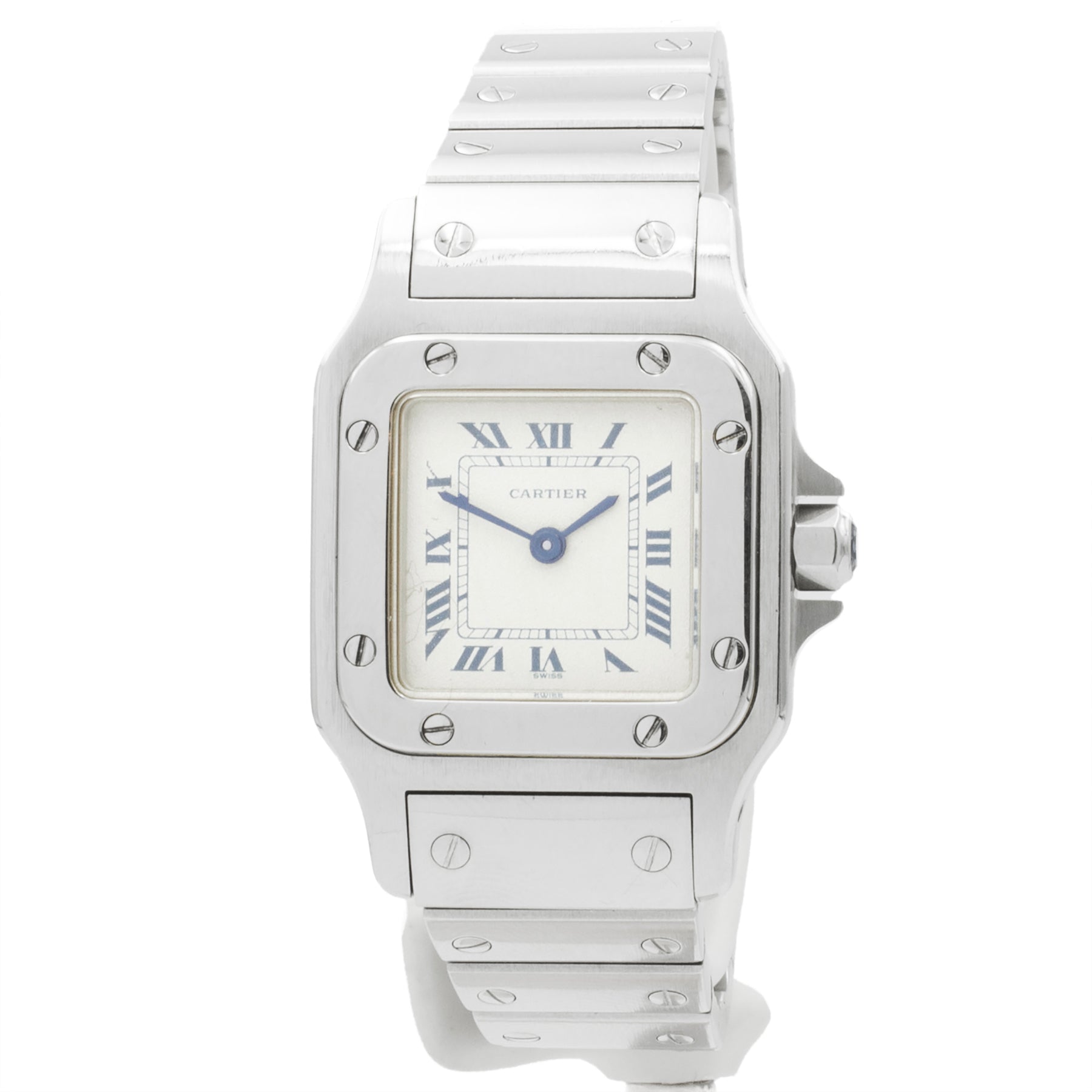 Magnifique montre Cartier Santos Galbée en acier. Entièrement révisée dans notre atelier, la montre sera livrée avec un an de garantie vendeur à compter de la date d'achat.