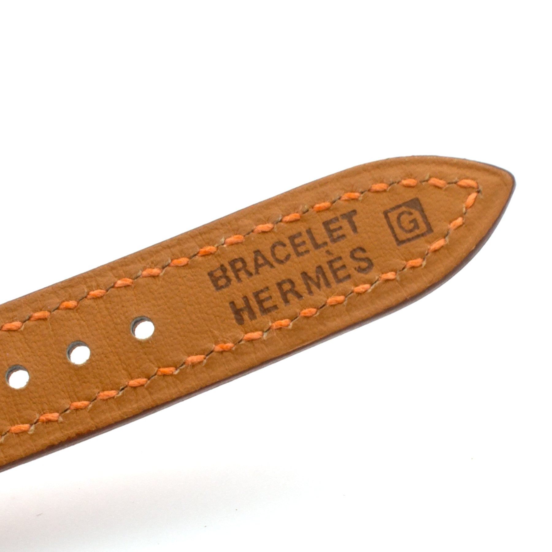 - Double-wrap orange leather strap by Hermès, steel buckle.