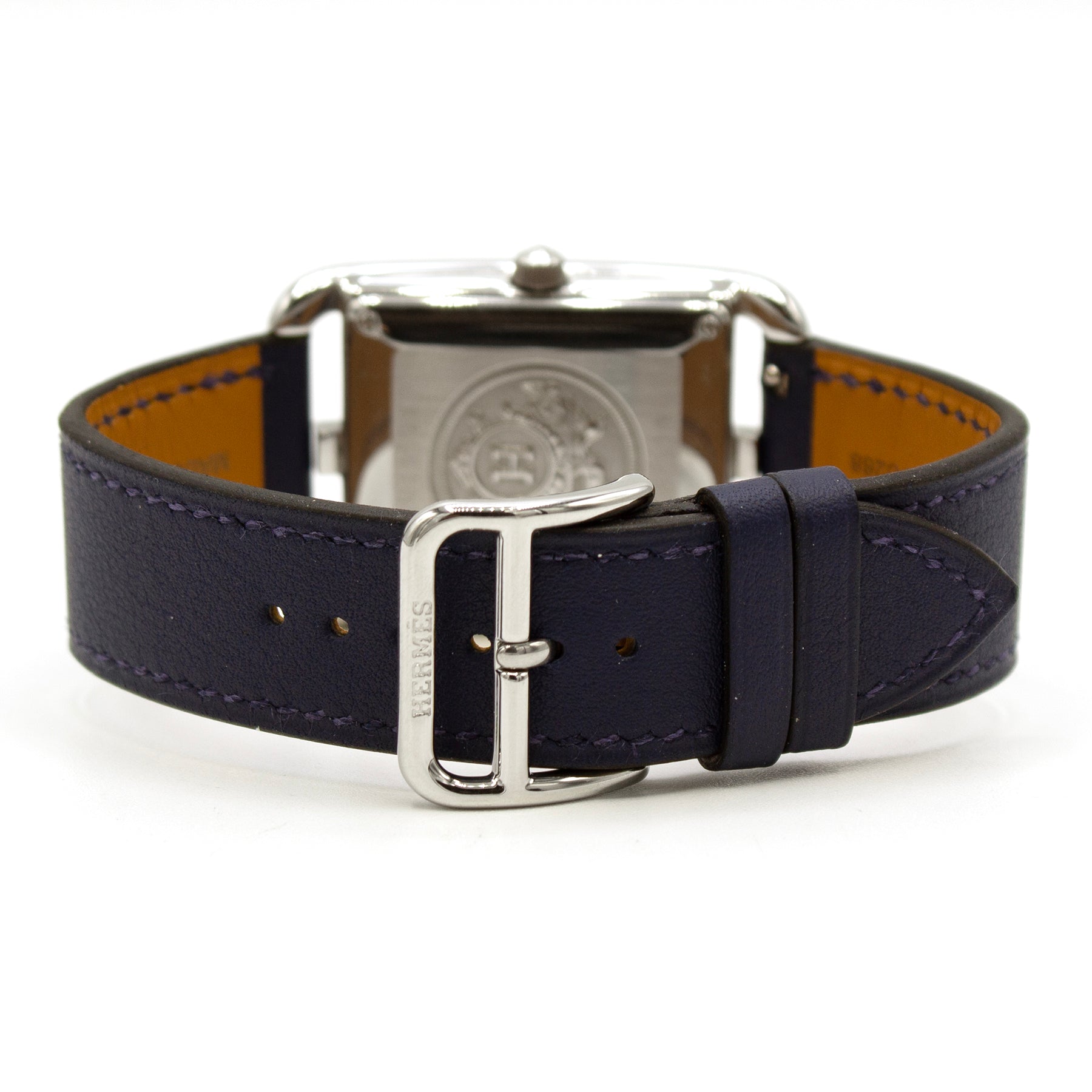 - BRAND NEW navy blue leather strap by Hermès, with signature pin buckle.