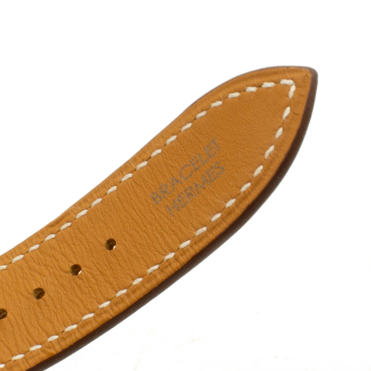 - BRAND NEW Hermès epsom gold leather strap, signed steel pin buckle.