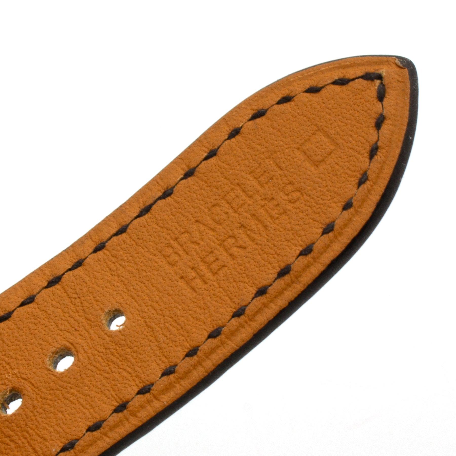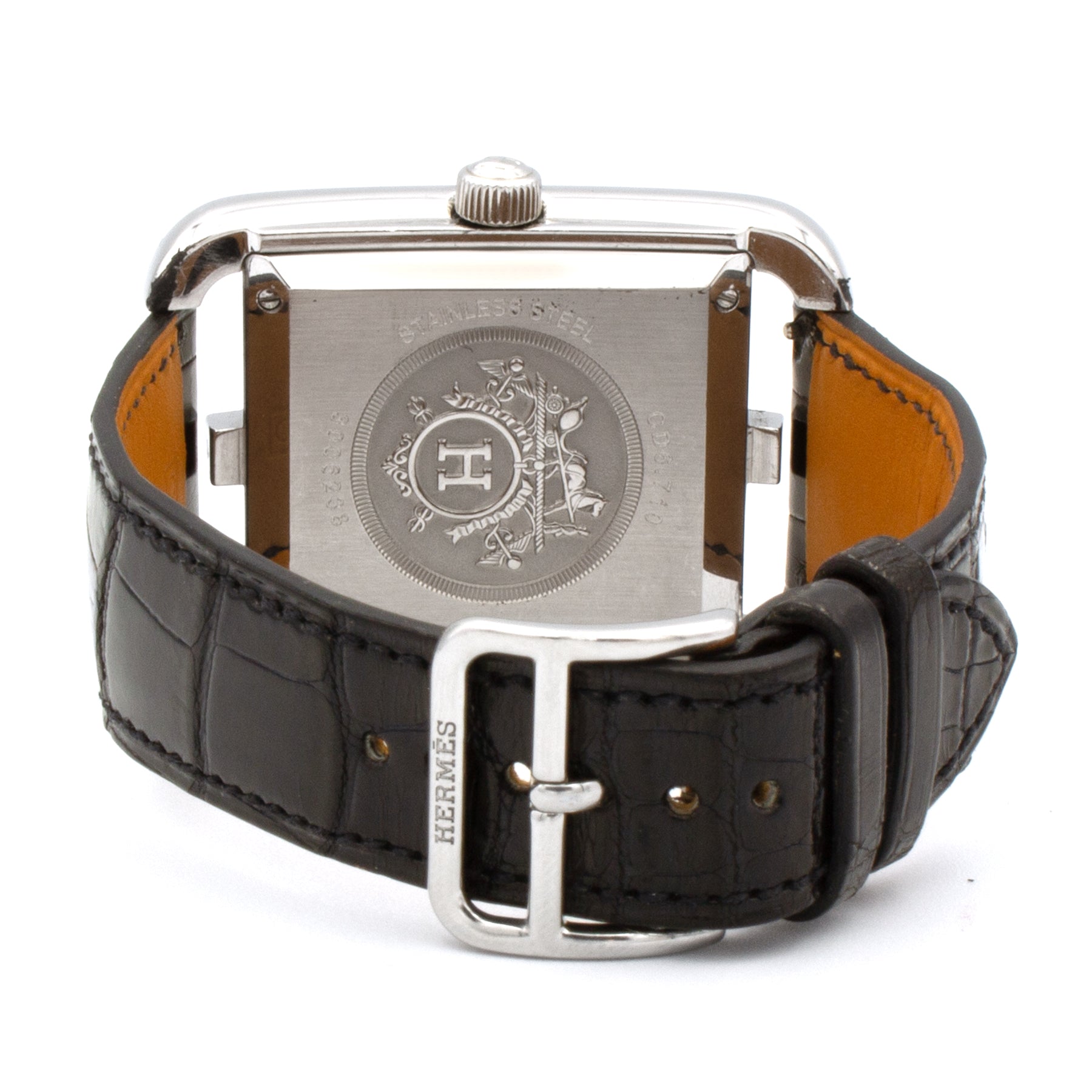 - Black crocodile strap signed Hermès, steel buckle signed Hermès.
