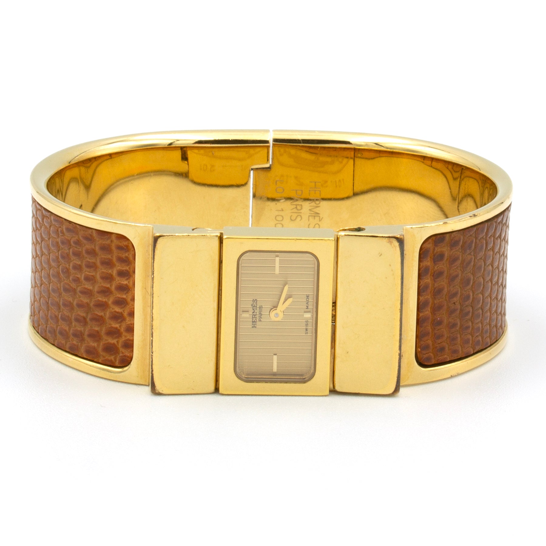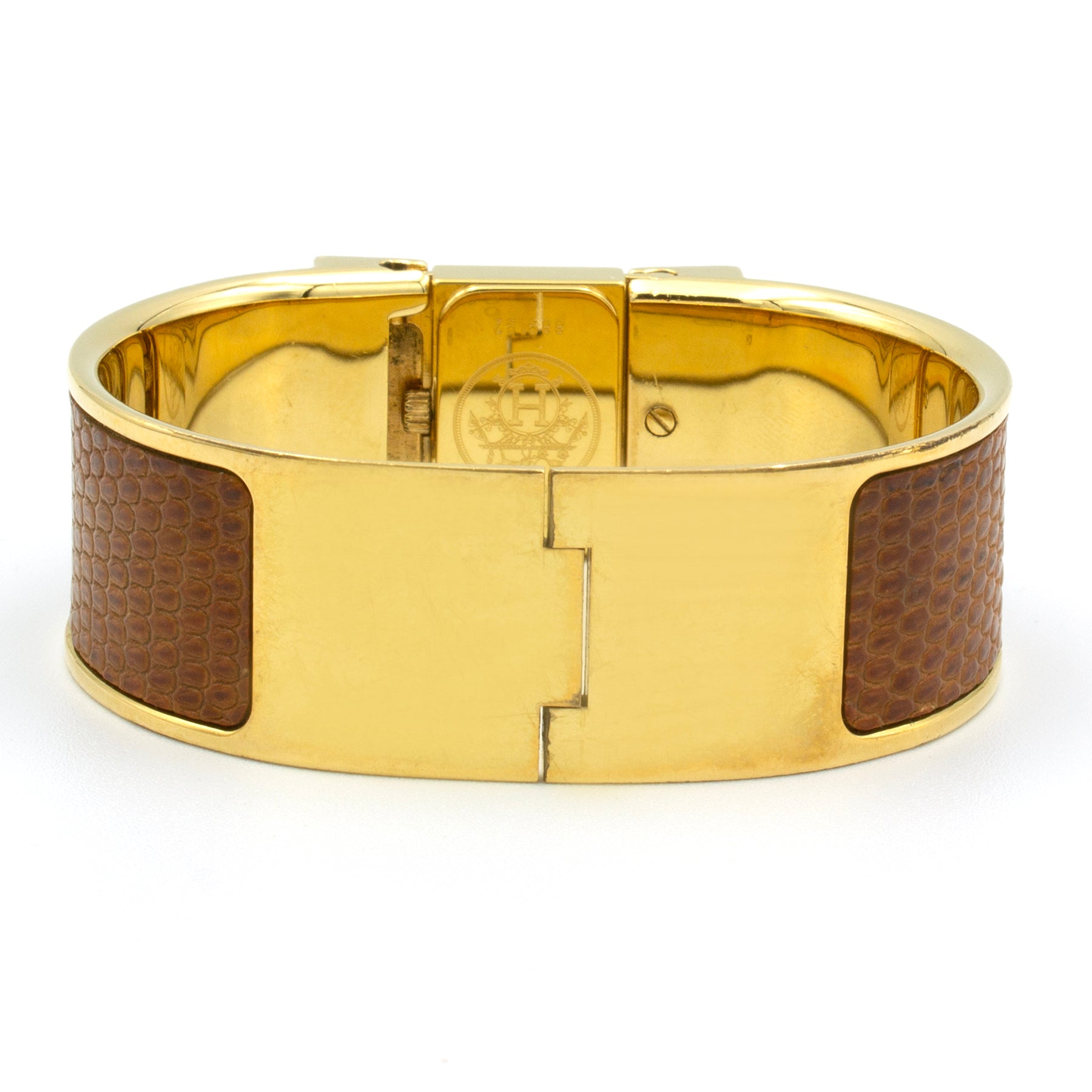 - Gold-plated Hermès bracelet covered with lizard leather.