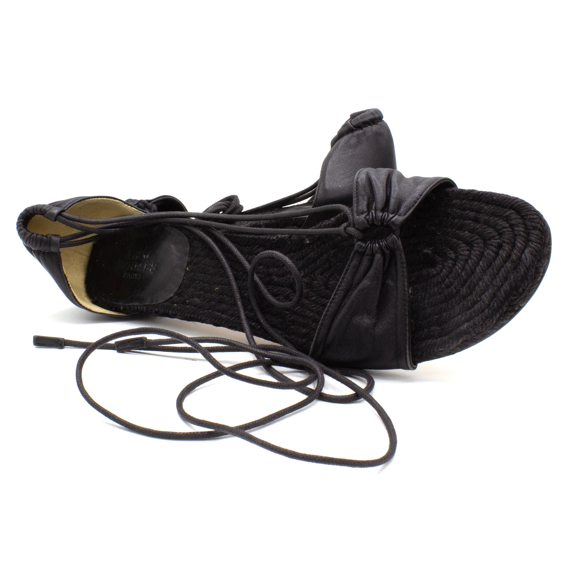 - Modèle à bout ouvert, à brides souples nouées sur le dessus et lacets à enrouler autour de la cheville pour un style élégant et féminin.