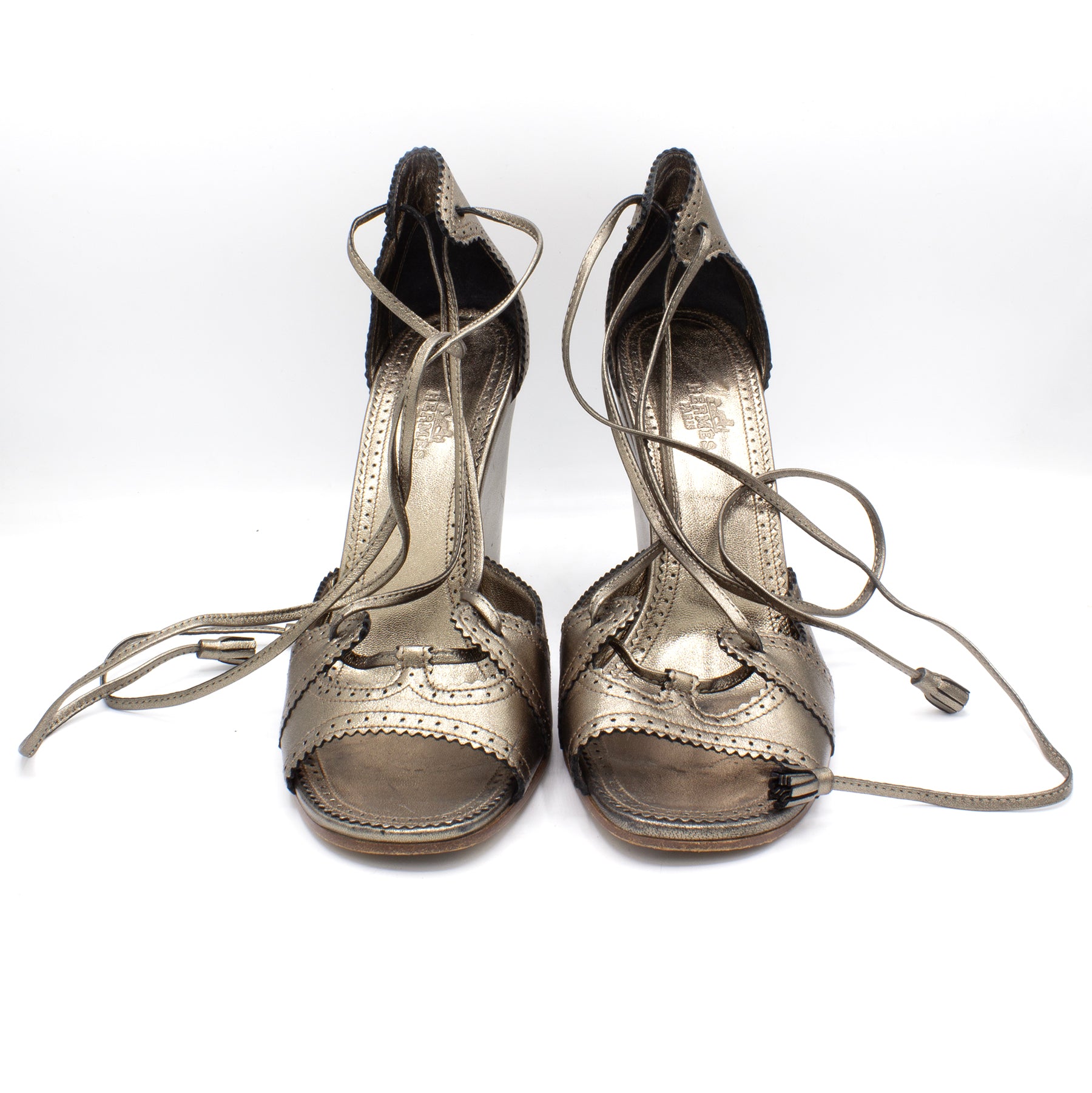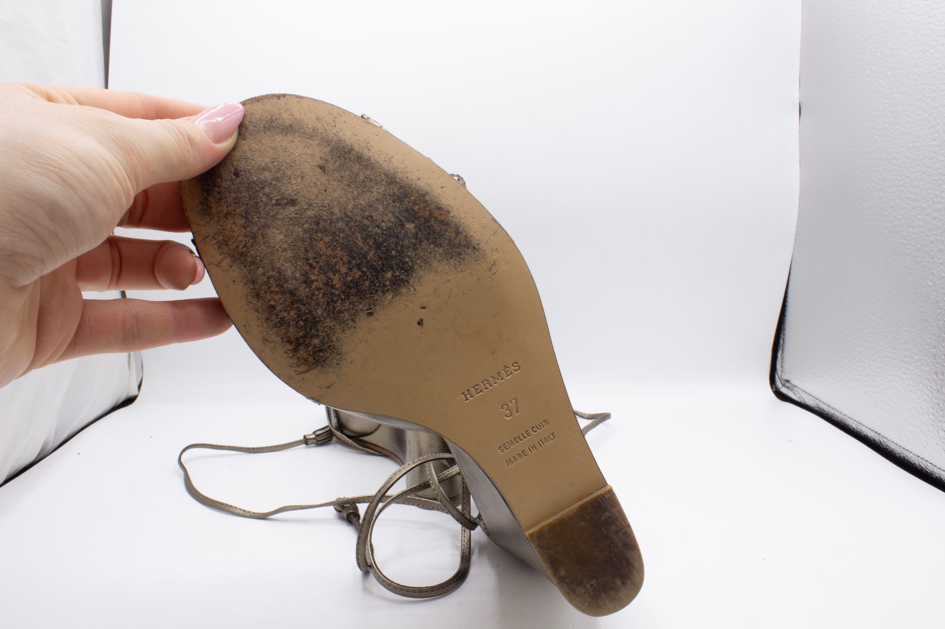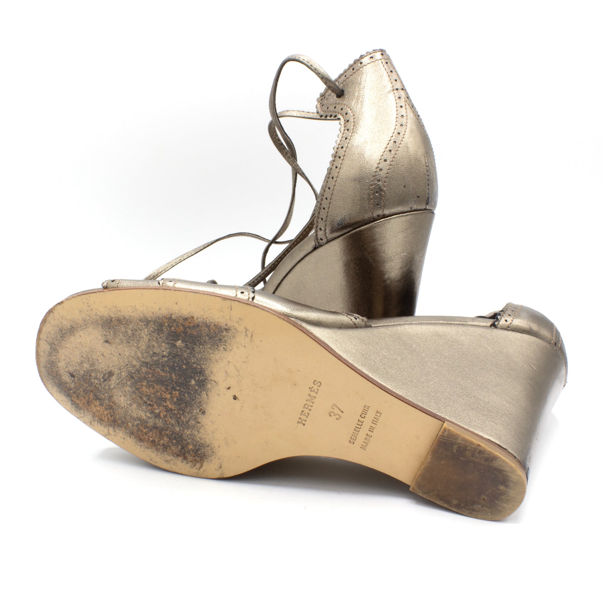 Beautiful Hermès wedge sandals in bronze metallic leather.
