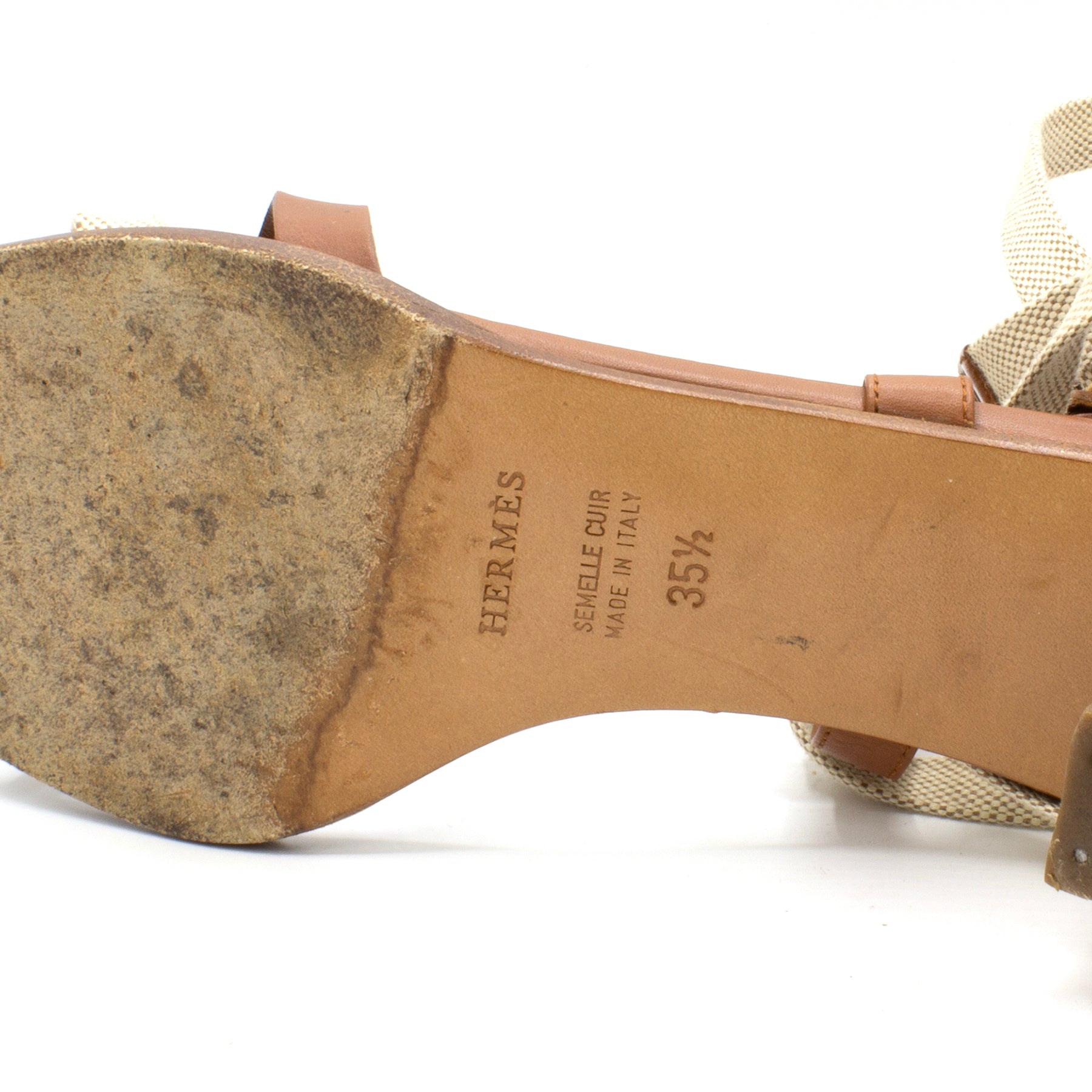 Superbes sandales Hermès en cuir et toile écrue.