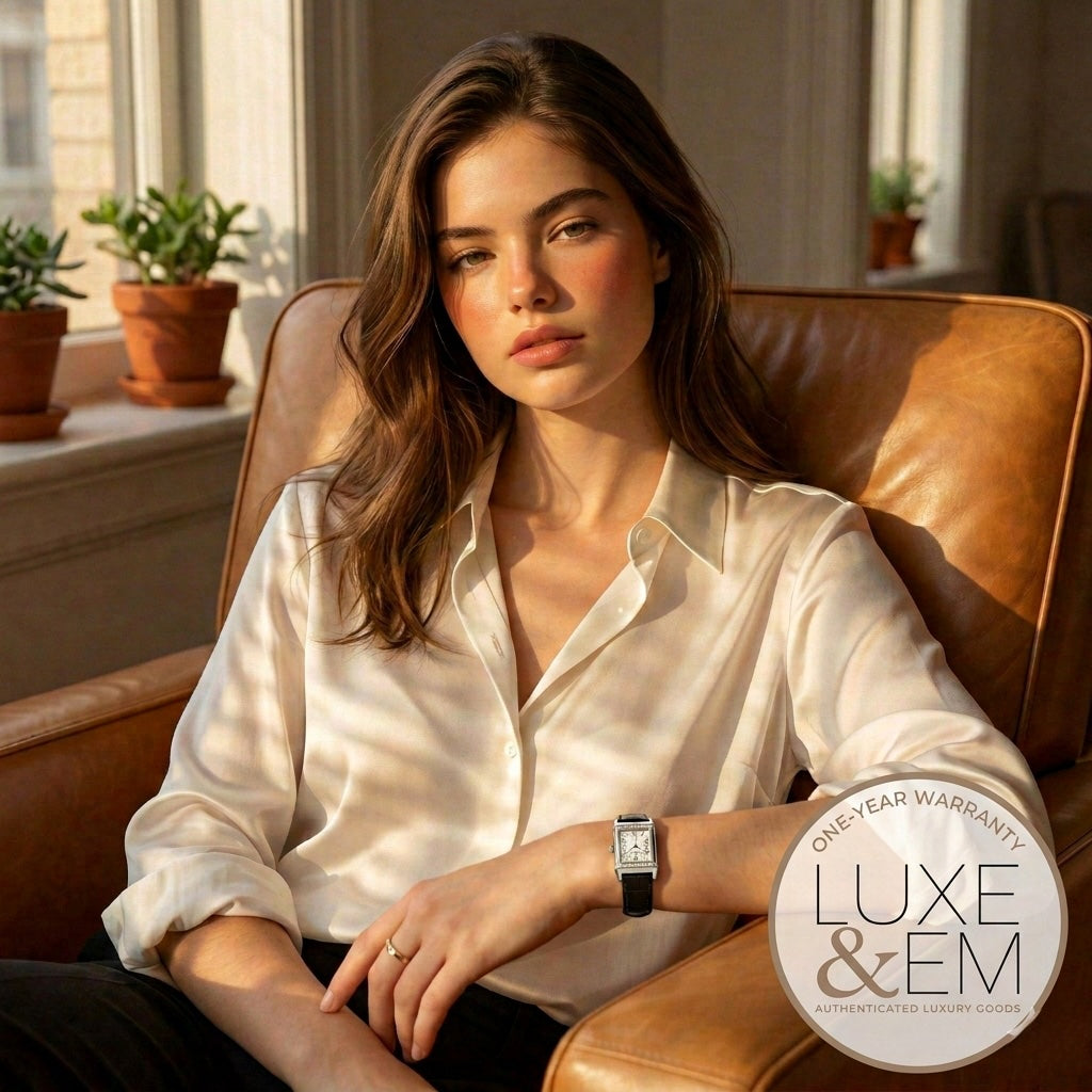- Reversible rectangular case with a smooth steel caseback.