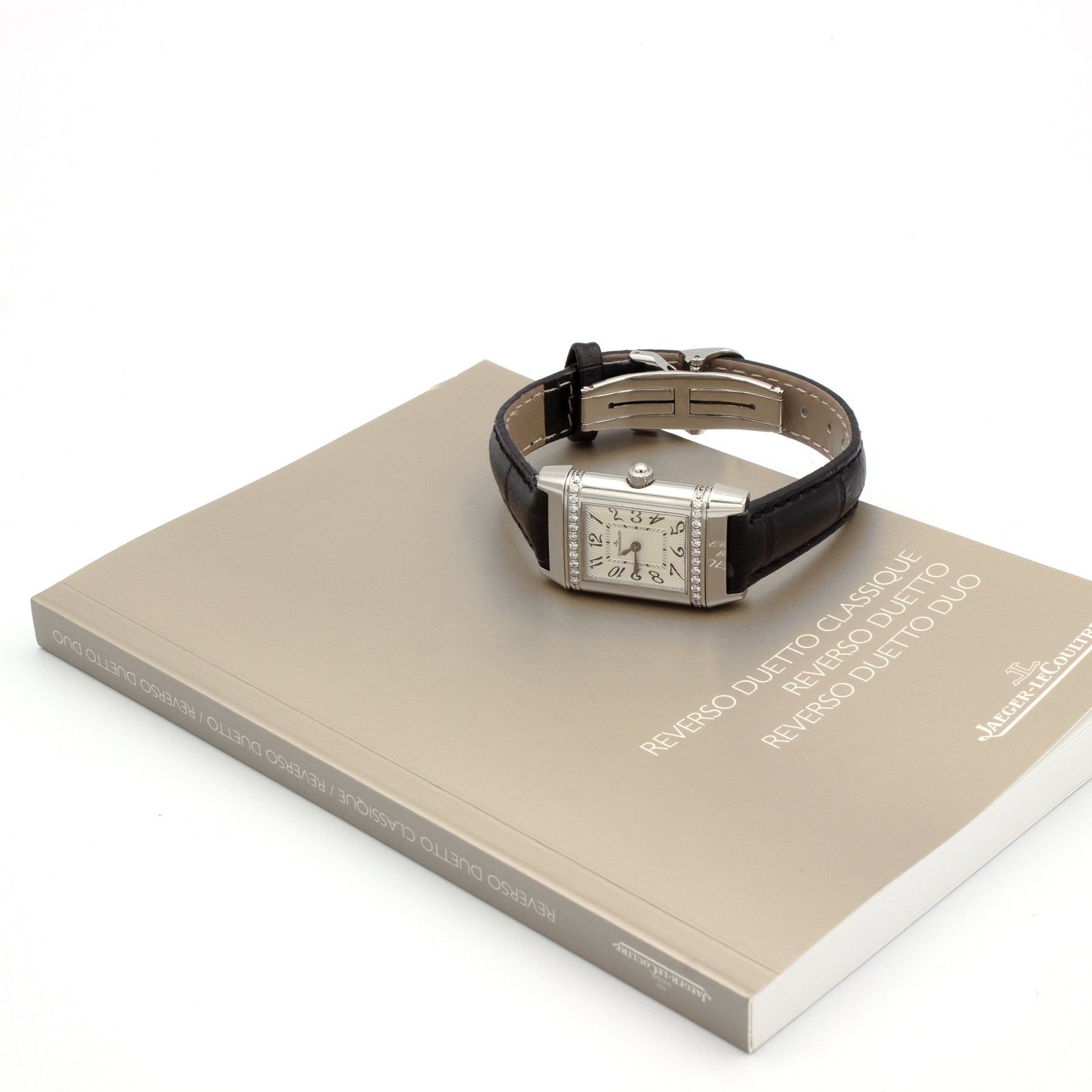 - Reverso 265.8.47 model in steel, featuring two rows of exquisite diamonds.
