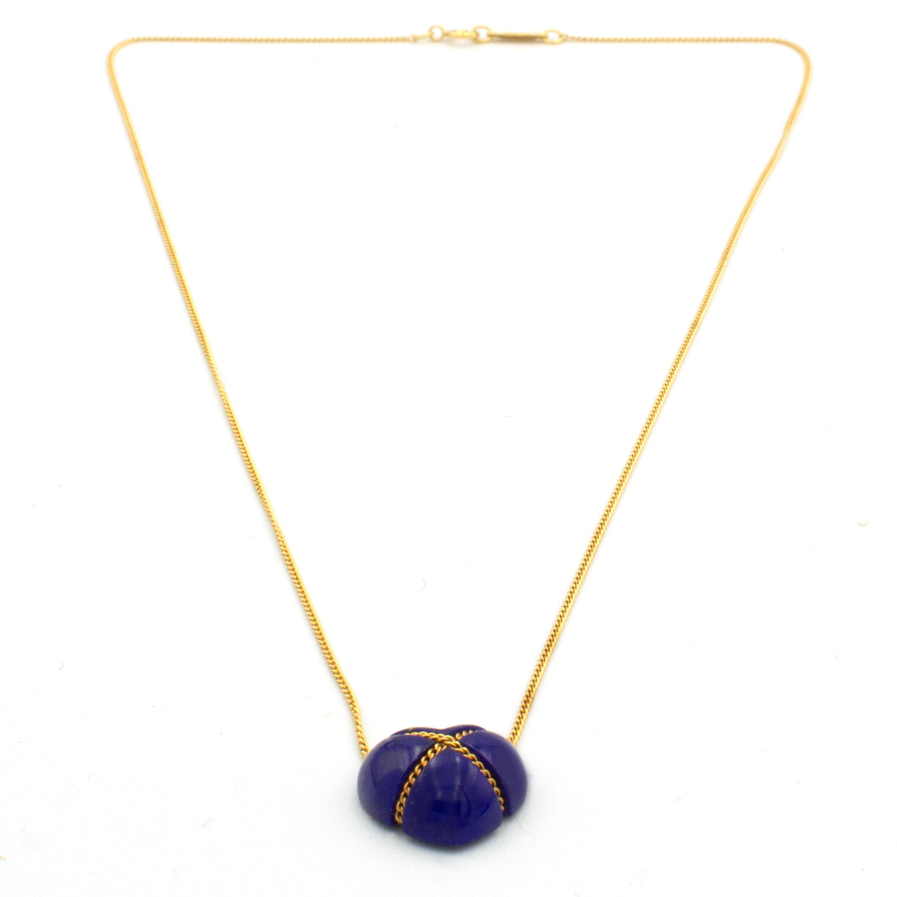 - Composed of a fine 18-carat yellow gold chain and a sculptural pendant in deep blue lapis lazuli.