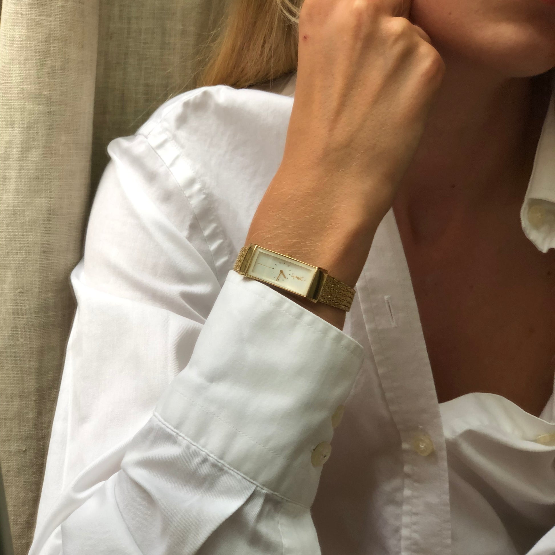 - Gold-plated fine mesh bracelet.